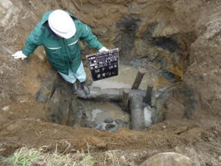 地下に埋設したパイプにより灌漑を行うシステムの設計。 既設構造物の状態を調査し(上写真) 施設の現状